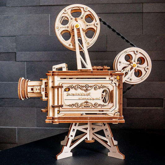 Vintage Vitascope Wooden Projector Kit — Natural Plywood Hand‑Crank