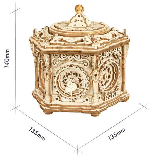 Treasure Box with Numerical Code — Wooden Plywood Puzzle Kit (Natural)