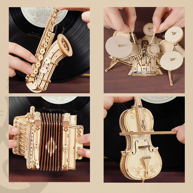 Welcome to a relaxed, hands-on build: the DIY Wooden Saxophone Model Kit lets you assemble a compact, decorative saxophone without glue or tools. The kit includes 136 precision plywood components and takes about 1–2 hours at a medium skill level. Finished size is approximately 85 × 70 × 230 mm, a tidy scale for shelves, desks, or music corners.